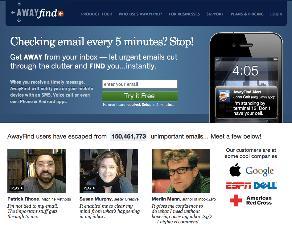 AwayFind notifies you about only the most important emails, freeing you from the shackles of constant alerts. Larger view.